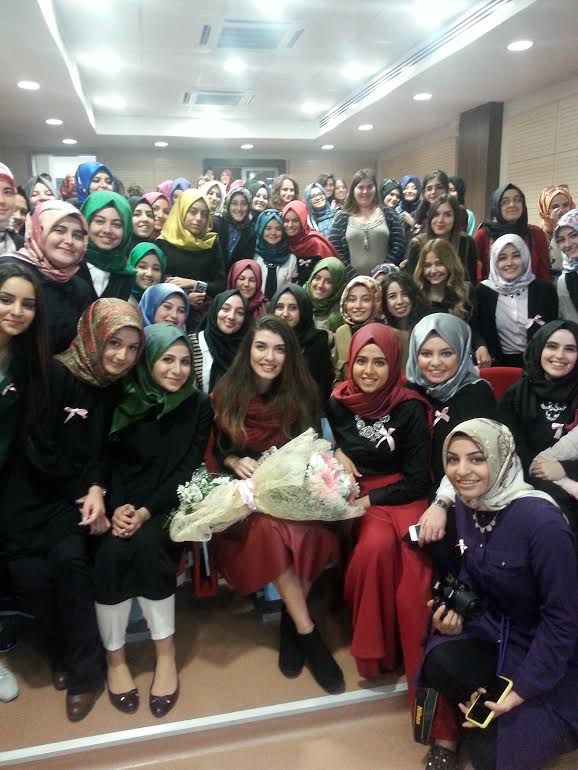 Aslıhan Güner Fatih Üniversitesi'nde öğrencilerle hatıra fotoğraf çektirdi