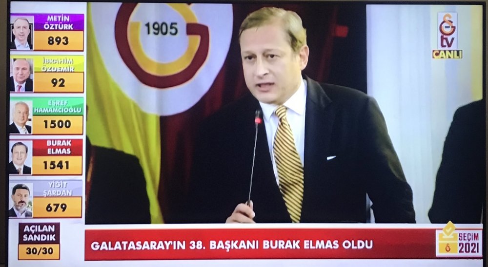 Galatasaray'da tarihi seçim sona erdi. Mustafa Cengiz'in görev süresinin dolmasıyla, 5 aday birden koltuğa talip oldu. Burak Elmas, Metin Öztürk, Yiğit Şardan, Eşref Hamamcıoğlu ve İbrahim Özdemir, Galatasaray'ın yeni başkanı olmak için yarıştı. Eşref Hamamcıoğlu ve Burak Elmas'ın nefes kesen yarışında kazananı son sandıklar belirledi. İlk 10 sandığın açılmasının ardından Eşref Hamamcıoğlu’nun 237 oy gerisinde yarışı 2. sırada götüren Burak Elmas, 11. sandıktan itibaren sandıklarda en çok oyu alan olmaya başladı. 27. sandıkta öne geçen ve Galatasaray tarihine geçen seçimi zirvede tamamlayan Burak Elmas, Galatasaray'ın 38. başkanı oldu.