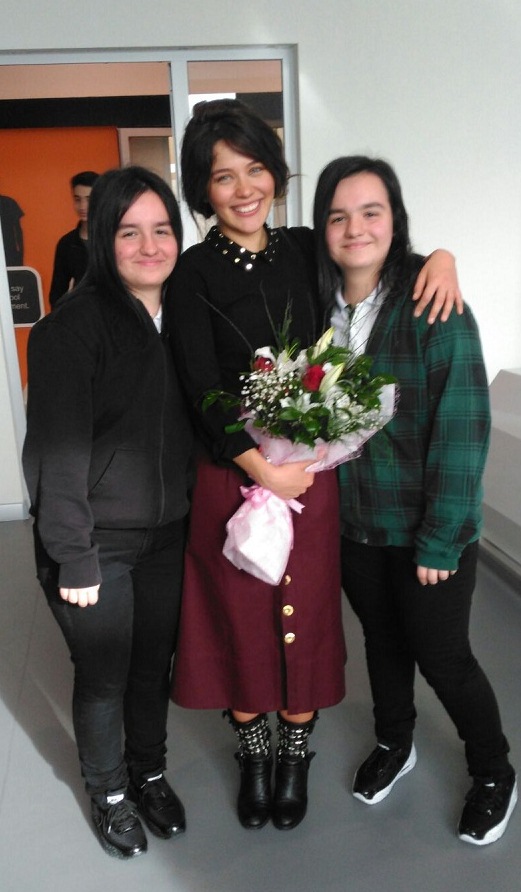 Başarılı oyuncu Burçin Abdullah Bayrampaşa Doğa Koleji’nde öğrencilerle bir araya geldi. Öğrencilerin sorularını yanıtlayan güzel oyuncu Burçin Abdullah “nasıl oyuncu oluruz” sorusuna, “Önce okulunuzu tamamlayın, okulu bitirdikten sonra gerçekten oyunculuğu istiyorsanız bu konuda güvenilir kurumlardan ve hocalardan ders alın. Oyunculuk göründüğü gibi hiçte kolay bir meslek dalı değil. Özel hayatınızdan ödün vermeniz gerekiyor, gecesi gündüzü yok” diye konuştu…