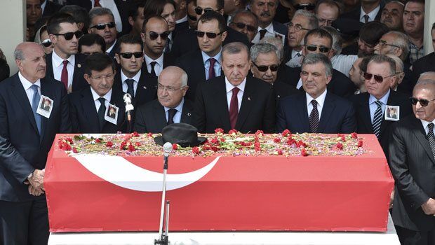 Ankara'da ki törene Cumhurbaşkanı Recep Tayyip Erdoğan, Başbakan Ahmet Davutoğlu, CHP Genel Başkanı Kemal Kılıçdaroğlu, MHP Genel Başkanı Devlet Bahçeli, eski Başbakanlardan Tansu Çiller, Deniz Baykal, Cemil Çiçek, Esat Kıratlıoğlu, Cavit Çağlar, Hikmet Çetin gibi siyaset dünyasının önde gelen isimleri katıldı.