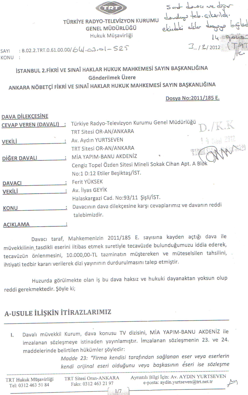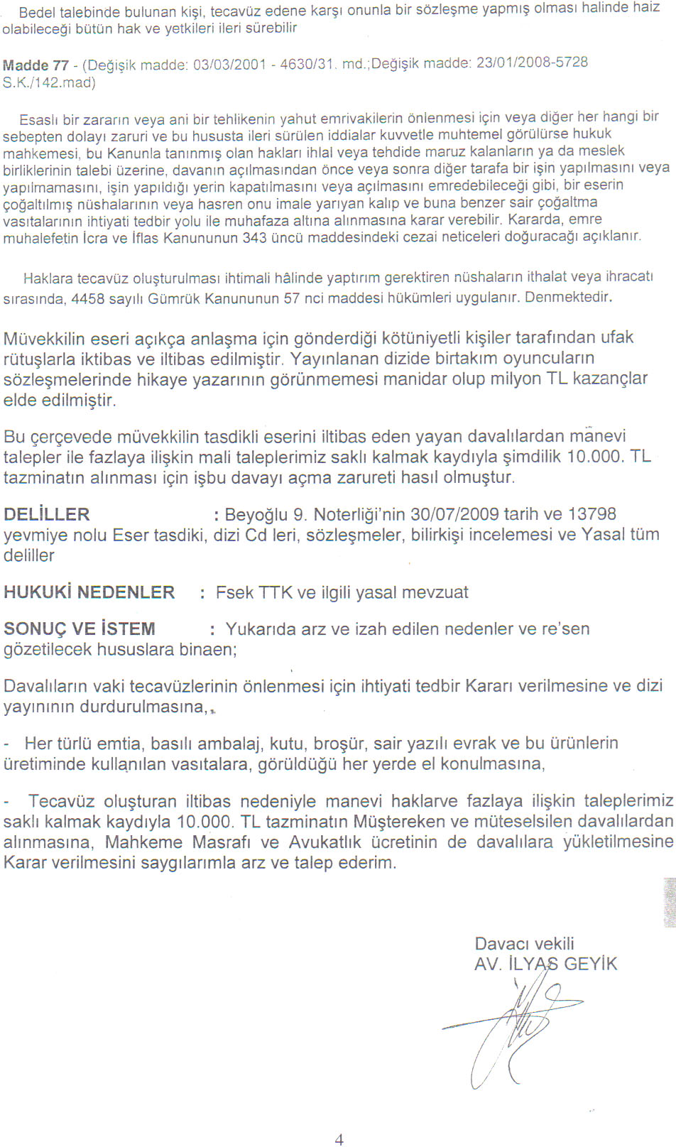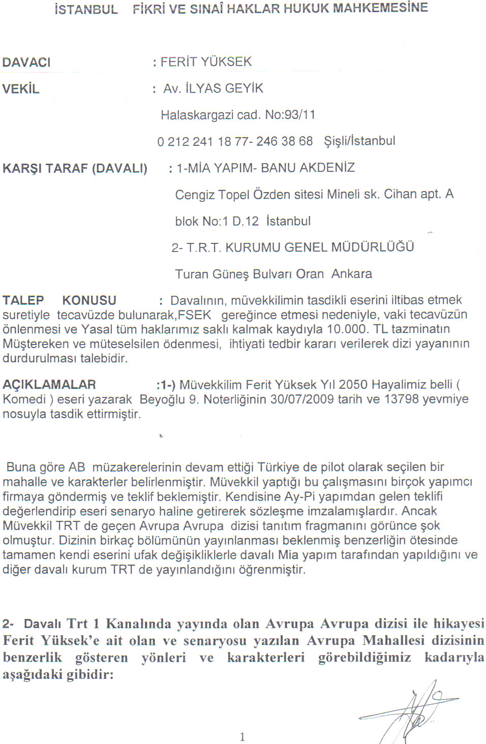 Aşağıda Ferit Yüksek'in Mia Yapım/BANU AKDENİZ ve TRT hakkında açmış olduğu davanın, detaylı 4 sayfalık dilekçesini makalenin sonunda okuyabilirsiniz!