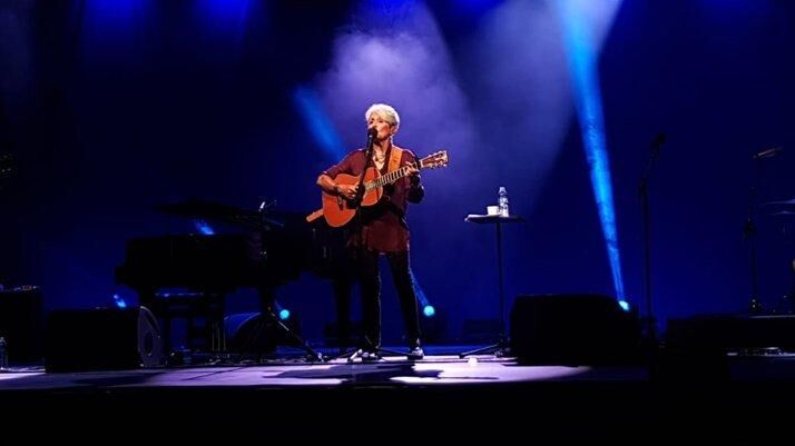 1968 kuşağının en önemli isimlerinden ve protest müziğin efsanesi Joan Baez, yeni albümü ‘Whistle Down the Wind’ için çıktığı dünya turnesi kapsamında dün akşam Harbiye Cemil Topuzlu Açıkhava Sahnesi’ndeydi. Klasikleşen eserleriyle birlikte yeni albümünden de şarkıları seslendiren Baez’i izlemeye gelenler arasında Leman Sam, Genco Erkal, Erkan Özerman gibi isimler de vardı.