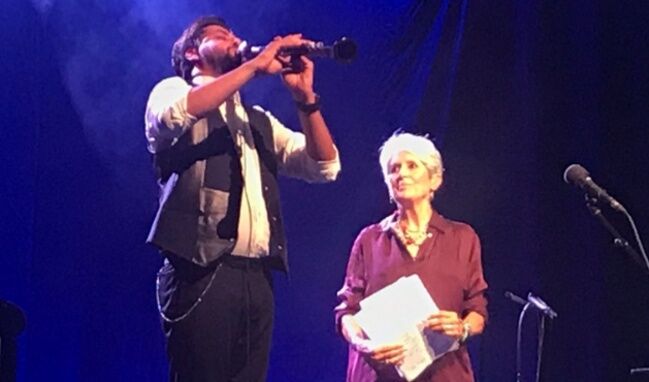 Baez’e sahnede klarnet virtüozü Serkan Çağrı da eşlik etti. Baez ile Çağrı, ilk olarak Nazım Hikmet’in ‘Kız Çocuğu’ şarkısının bestelenmiş versiyonunu birlikte seslendirdiler.