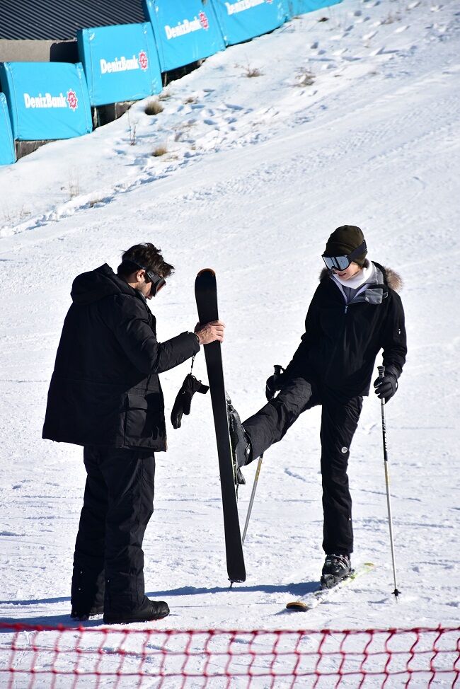 Sevgilisi Zeynep Oymak'ın kayak takımlarını giymesine yardımcı olduktan sonra soluğu pistte alan Kaan Urgancıoğlu, zaman zaman dengesini kaybedip düşse de, performansı ile adeta pistin tozunu attırdı. Snowboard ile beyaz örtü üzerinde adeta şov yapan Urgancıoğlu, sergilediği artistik figürlerle heyecan dolu saatler geçirirken, sevgilisi Zeynep Oymak ise başarılı oyuncuya dikkatli olması konusunda telkinlerde bulunarak tedbiri elden bırakmadı.