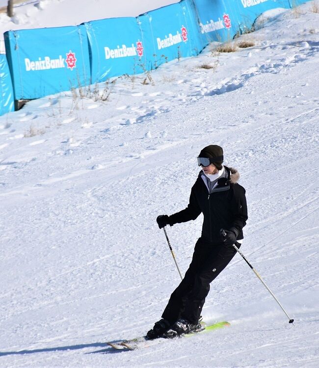 Zeynep Oymak Palandöken'de kayak yaparken.