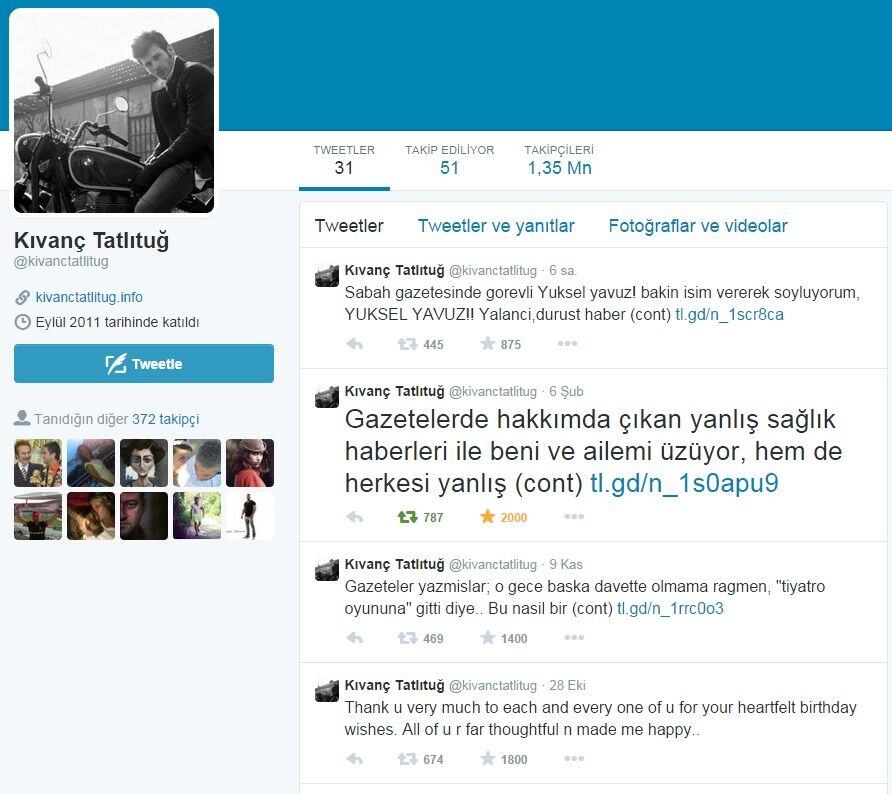Kıvanç Tatlıtuğ hakkında çıkan haberlerle ilgili olarak Twitter hesabından şu açıklamalarda bulundu: