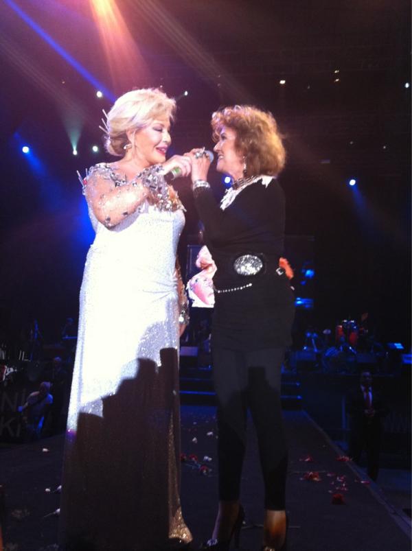 Emel Sayın'a sahnede efsane sanatçı Gülden Karaböcek eşlik etti.