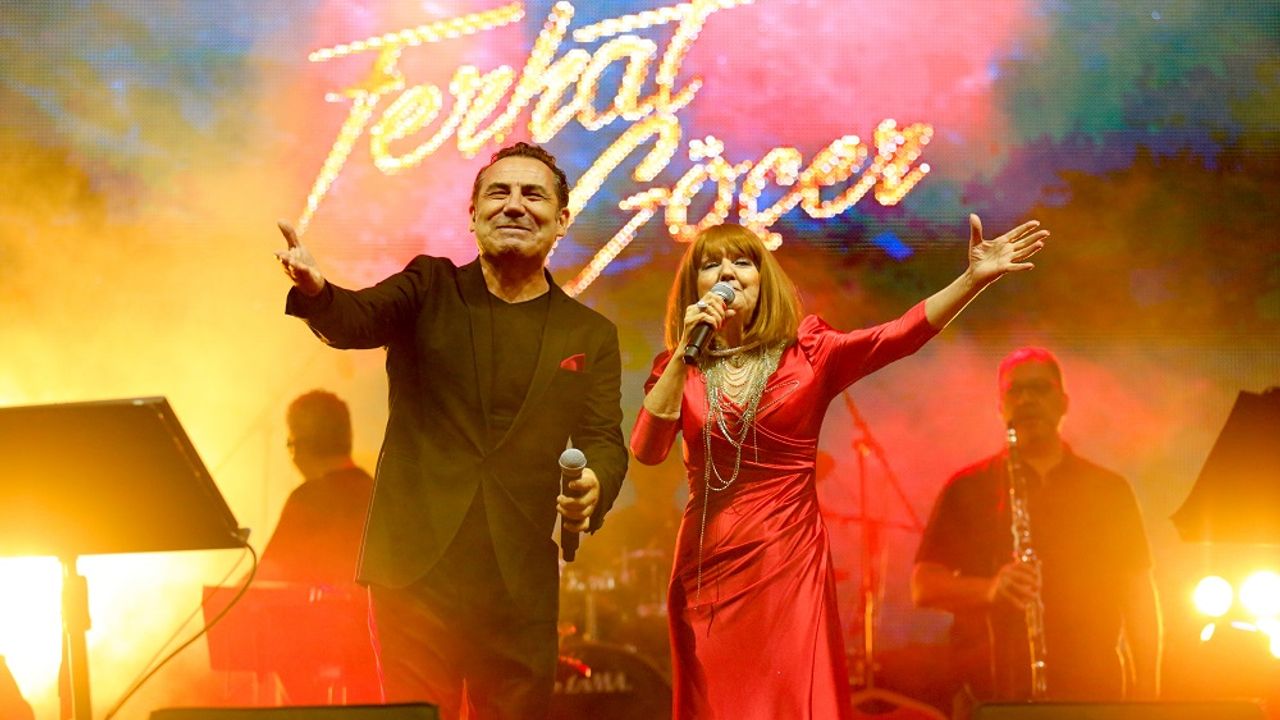Ferhat Göçer ve Gülden Karaböcek bir etkinlikte aynı sahneyi paylaşırlarken.