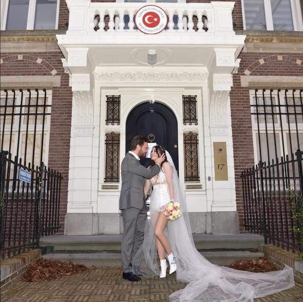 Kıratlı, Amsterdam Başkonsolosu Engin Arıkan’ın kıydığı nikâhta Zeynep Bozyaka imzalı şort ve sadece göğüs uçları kapalı gelinlik, Akçıl ise Mehmet Dudu’nun hazırladığı bir takım elbise giydi.